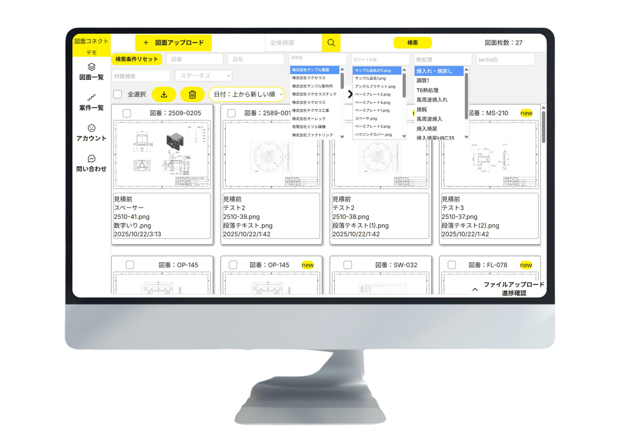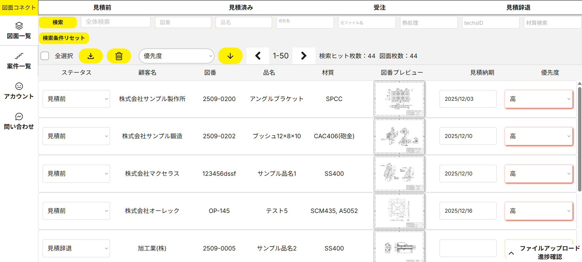図面に見積・工程表・3Dデータ・指示書を紐付け。